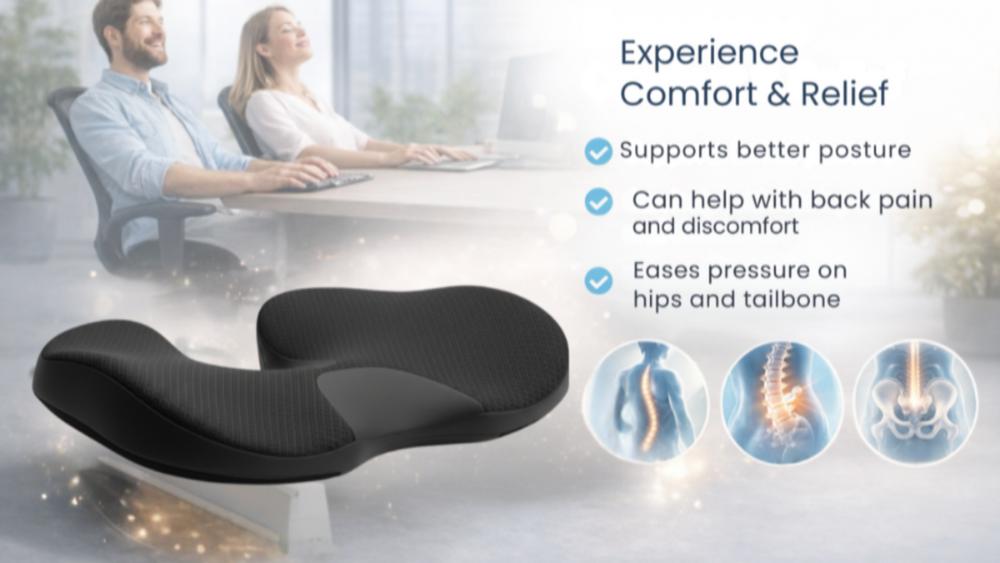 We offer thoughtfully designed comfort essentials, including memory foam pillows and ergonomic seat cushions, created to support your body and help reduce everyday pressure from long days. Made for use at home, at work, or on the go, our products focus on balance, support, and comfort you can feel.