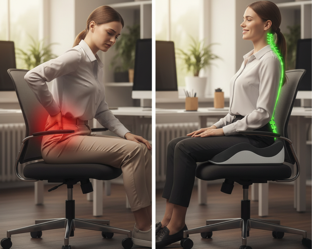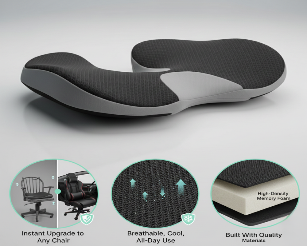 This memory foam seat cushion is life-changing! My hips and lower back feel so much better after just a few days