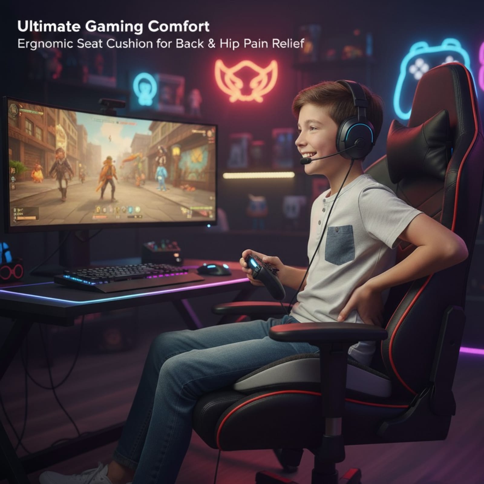 The memory foam molds perfectly to my body. Sitting for hours is no longer painful